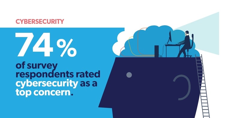 - Cybersecurity: 2021 was a record year for cybersecurity incidents, with notable events like the Colonial Pipeline ransomware attack and the Log4J vulnerability. Unsurprisingly, nearly three-fourths (74%) of our survey respondents cited cybersecurity as a top concern for their organization.
