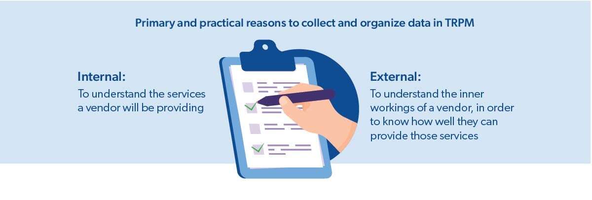 Ideally, there are two primary and practical reasons to collect and organize data in TRPM: