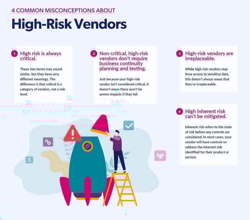 Now that you can identify your high-risk vendors, let's take a look at some common misconceptions. By gaining some more insight into high-risk vendors, you’ll be better prepared to handle them within your vendor management program.