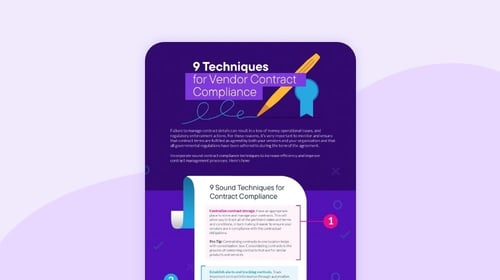 Incorporate sound contract compliance techniques to lessen exposure to vendor risk and improve contract management practices. This infographic covers techniques that should help you with the process.