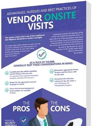 The vendor types which warrant an on-site visit will vary across industries, but a best practice is to perform on-site visits on critical and high-risk vendors.