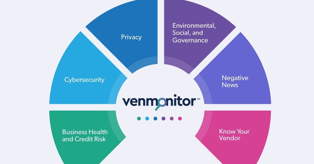 • Cybersecurity: Third-party vendors can be an organization’s weakest link and leave them vulnerable to data breaches, compromising customer data. Venmonitor™ provides access to cybersecurity data and scores received from multiple leading cybersecurity monitoring partners.
